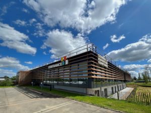 - L’extérieur du bâtiment a subi une refonte complète. Avant les travaux, la façade se présentait sous une forme plus classique et vieillissante. L’entrée était peu mise en valeur, et l’aspect général manquait d’identité. Aujourd’hui, l’architecture extérieure se distingue par des lignes modernes et dynamiques, avec une structure horizontale marquée par un bardage qui habille le bâtiment et le lie à son environnement.
