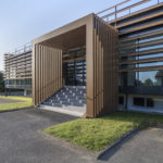 - L’extérieur du bâtiment a subi une refonte complète. Avant les travaux, la façade se présentait sous une forme plus classique et vieillissante. L’entrée était peu mise en valeur, et l’aspect général manquait d’identité. Aujourd’hui, l’architecture extérieure se distingue par des lignes modernes et dynamiques, avec une structure horizontale marquée par un bardage qui habille le bâtiment et le lie à son environnement.